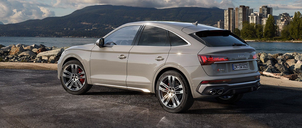 Audi Q5 Sportback pokazuje silny charakter. Po bokach ośmiokątnej osłony chłodnicy Singleframe znajdują się duże wloty powietrza. Elegancko zakreślona linia ramion podkreśla koła, wskazując wyposażenie w napęd na cztery koła quattro. Mocno pochylona tylna szyba i pozornie wysoko zamontowany tylny zderzak sprawiają, że Audi Q5 Sportback emanuje dynamiką i siłą. Z kolei dzięki wyrazistym detalom Audi SQ5 Sportback TDI wygląda na jeszcze mocniejsze. Pionowe klamry strukturyzują duże boczne wloty powietrza. W ośmiokątnej osłonie chłodnicy Singleframe filigranowe żebra łączą ośmiokątne oczka kratownicy. W tylnym zderzaku znajduje się klamra wykonana z matowego aluminium, pod którą umiejscowione są cztery chromowane owalne końcówki rur układu wydechowego i dyfuzor.
