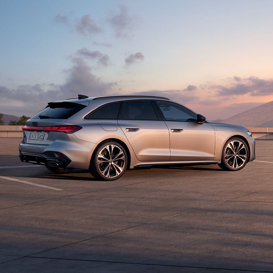 Sportowe proporcje nowego Audi A5 Avant podkreślają szerokie nadkola, a płaska tylna szyba nadaje modelowi charakteru.