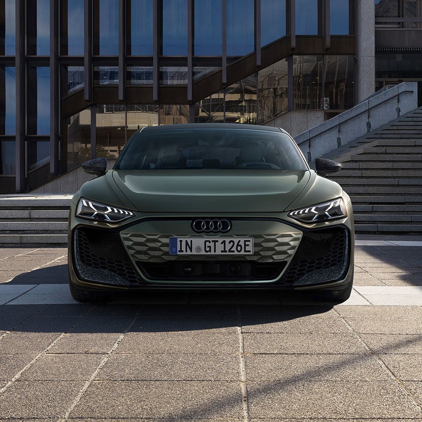 Wyłącznie dla Audi RS e-tron GT performance dostępny jest zielony lakier Bedford metalik i ciemne elementy stylistyczne Carbon Camouflage, takie jak np. przyciemniony, matowy karbonowy dach. Matowe wykończenie karbonu nadaje Gran Turismo niezwykle efektowny i sportowy wygląd.
