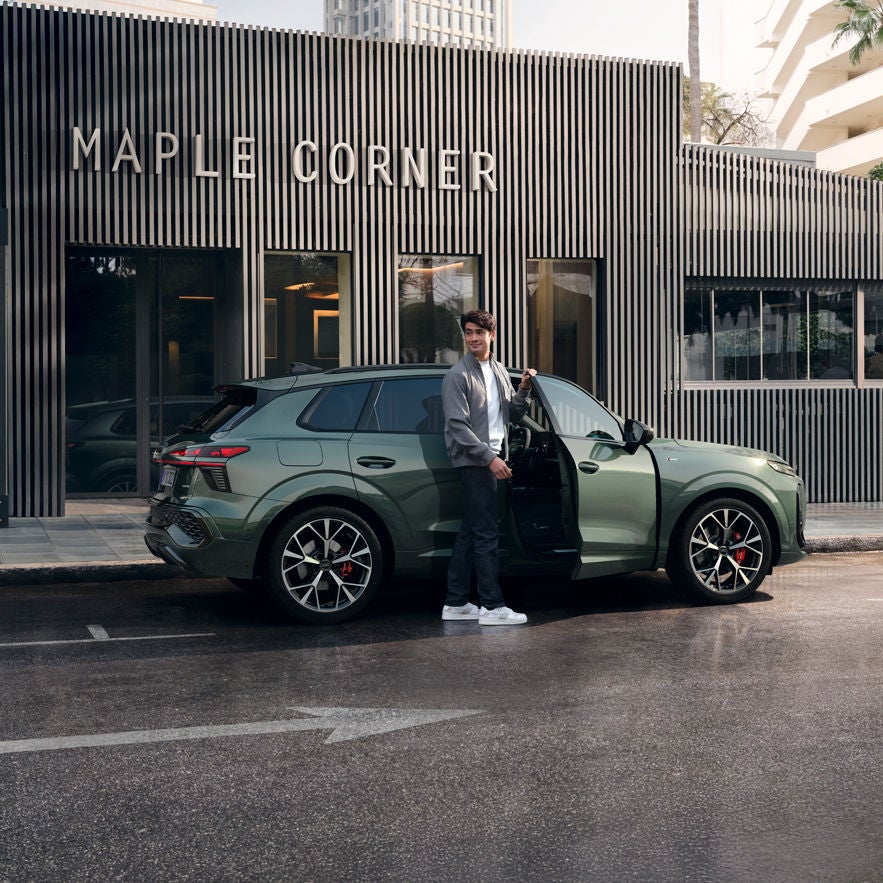 Sportowe wnętrze: Opcjonalne wyposażenie wnętrza S line obejmuje sportowe fotele z emblematem S, trójramienną kierownicę wielofunkcyjną „plus”, prawy i lewy segment kierownicy oraz gałkę dźwigni zmiany biegów obszyte perforowaną skórą, a także pedały i podparcie pod lewą nogę ze stali nierdzewnej.