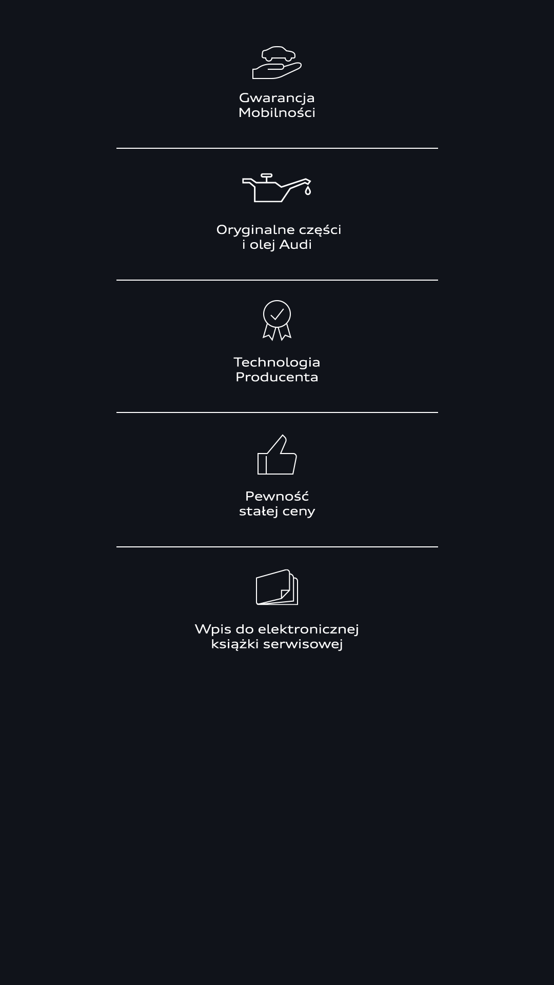 • kupiłeś samochód używany Audi, który nie podlega Programowi Gwarancji Mobilności,